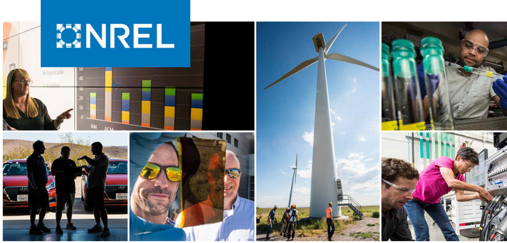 ![](images/e3cf5199761175d226cc33794ee9ebb7a89b2f9cf0f39528b2eaeef3d2ad016d.jpg) # Full-System Linearization for Floating Offshore Wind Turbines in OpenFAST Preprint Jason M. Jonkman, Alan D. Wright, Greg J. Hayman, and Amy N. Robertson National Renewable Energy Laboratory Presented at the ASME 2018 $7^{s t}$ International Offshore Wind Technical Conference San Francisco, California November 4-7, 2018 # Full-System Linearization for Floating Offshore Wind Turbines in OpenFAST Preprint Jason M. Jonkman, Alan D. Wright, Greg J. Hayman, and Amy N. Robertson National Renewable Energy Laboratory # Suggested Citation Jonkman, Jason, Alan Wright, Greg Hayman, and Amy Robertson. 2018. Full-System Linearization for Floating Offshore Wind Turbines in OpenFAST: Preprint. Golden, CO: National Renewable Energy Laboratory. NREL/CP-5000-71865. https://www.nrel.gov/docs/fy19osti/71865.pdf This work was authored by the National Renewable Energy Laboratory, operated by Alliance for Sustainable Energy, LLC, for the U.S. Department of Energy (DOE) under Contract No. DE-AC36-08GO28308. Funding provided by U.S. Department of Energy Office of Energy Efficiency and Renewable Energy Wind Energy Technologies Office. The views expressed herein do not necessarily represent the views of the DOE or the U.S. Government. The U.S. Government retains and the publisher, by accepting the article for publication, acknowledges that the U.S. Government retains a nonexclusive, paid-up, irrevocable, worldwide license to publish or reproduce the published form of this work, or allow others to do so, for U.S. Government purposes. This report is available at no cost from the National Renewable Energy Laboratory (NREL) at www.nrel.gov/publications. U.S. Department of Energy (DOE) reports produced after 1991 and a growing number of pre-1991 documents are available free via www.OSTI.gov. Cover Photos by Dennis Schroeder: (clockwise, left to right) NREL 51934, NREL 45897, NREL 42160, NREL 45891, NREL 48097, NREL 46526. # FULL-SYSTEM LINEARIZATION FOR FLOATING OFFSHORE WIND TURBINES IN OPENFAST Jason M Jonkman, Alan D Wright, Greg J Hayman, Amy N Robertson National Renewable Energy Laboratory 15013 Denver West Parkway Golden, Colorado 80401 (USA) # ABSTRACT The wind engineering community relies on multiphysics engineering software to run nonlinear time-domain simulations (e.g., for design-standards-based loads analysis). Although most physics involved in wind energy are nonlinear, linearization of the underlying nonlinear system equations is often advantageous to understand the system properties and exploit well-established methods and tools for analyzing linear systems. This paper presents the development of the new linearization functionality of the open-source engineering tool OpenFAST for floating offshore wind turbines, as well as the concepts and mathematical background needed to understand and apply it. 风能工程领域依赖于多物理场工程软件来进行非线性时域仿真(例如,用于基于设计标准荷载分析)。 尽管风能涉及的大部分物理现象是非线性的,但对底层非线性系统方程进行线性化通常有利于理解系统特性,并利用成熟的方法和工具来分析线性系统。本文介绍了开源工程工具OpenFAST针对海上漂浮风电机组的新线性化功能开发,以及理解和应用该功能所需的概念和数学基础。 # INTRODUCTION To support design and analysis—so that wind turbines are innovative, optimized, reliable, and cost-effective—the wind industry and research communities rely on engineering software (i.e., design tools) capable of predicting the coupled dynamic loads and responses of the wind system. OpenFAST (formerly known as FAST), developed by the National Renewable Energy Laboratory (NREL) via support from the U.S. Department of Energy, is an open-source multiphysics tool that enables the design of wind turbines [1]. OpenFAST models the important physical phenomena and system couplings, including the environmental excitation (wind, waves, and current) and full-system dynamic response (rotor, drivetrain, nacelle, support structure, and controller) under both normal (for fatigue) and extreme (for ultimate) loading conditions. The OpenFAST model enables the analysis of a range of wind turbine configurations, including two- or three-bladed horizontal-axis rotors, pitch or stall regulation, rigid or teetering hub, upwind or downwind rotor, and lattice or tubular towers. The wind turbine can be modeled on land or offshore on bottom-fixed or floating substructures. The primary use of OpenFAST is to run nonlinear timedomain simulations (e.g., for design-standards-based loads analysis). Although most physics involved in wind energy are nonlinear, linearization of the underlying nonlinear system equations is often advantageous to understand the system response and exploit well-established methods and tools for analyzing linear systems. For example, linear state-space models can be transformed to transfer functions, impulseresponse functions, or frequency-response functions. The ability to generate linearized models is important for eigenanalysis (to derive structural natural frequencies, damping ratios, and mode shapes), controls design (based on linear statespace models), stability analysis, gradients for optimization problems, and support for the development of reduced-order models. Previous FAST linearization work focused on 1) structuring the FAST v8 source code to enable linearization (FAST v8 is the predecessor of OpenFAST); 2) developing the general approach to linearizing the mesh mapping within the module-to-module, input-output coupling relationships, including rotations; 3) linearizing core (but not all) features of the land-based modules of FAST (InflowWind, AeroDyn, ServoDyn, and ElastoDyn) and their coupling; and 4) verifying this implementation by applying the tool to sample cases [2]. More recently, the ability to linearize OpenFAST mode