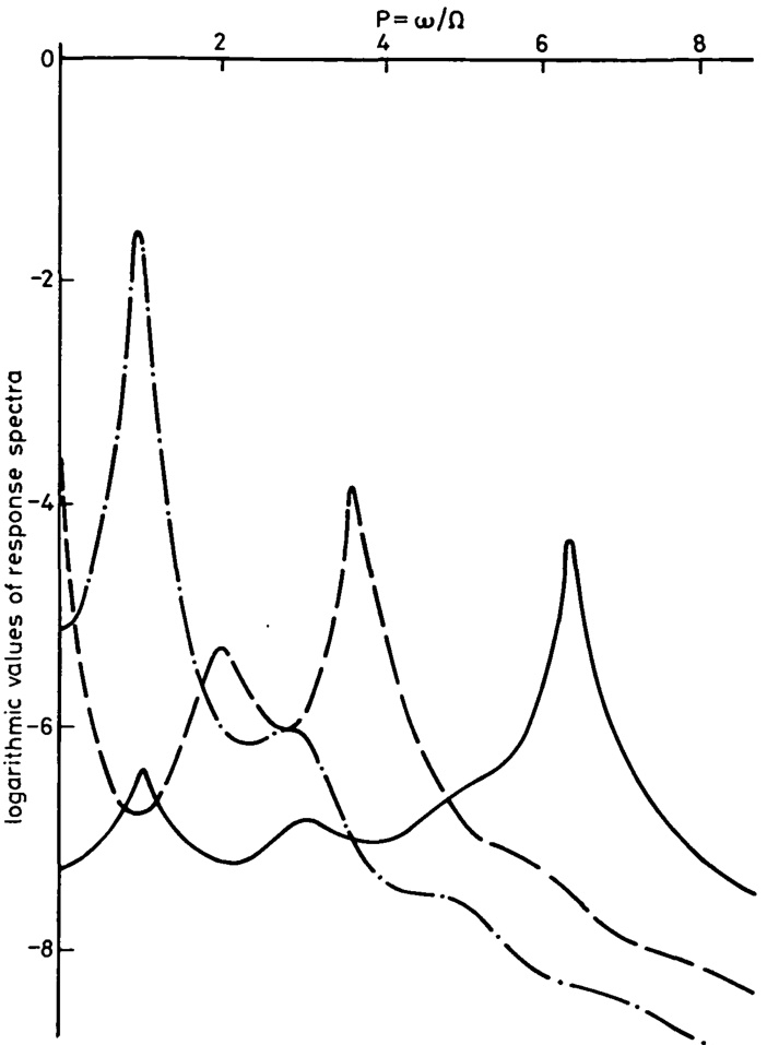 Fig.9Structural response of a rotor to turbulent loads expressed as modalresponseinteeter,symmetric and asymmetricfatwisemodes asymmetric,---symmetric,——·—teeter