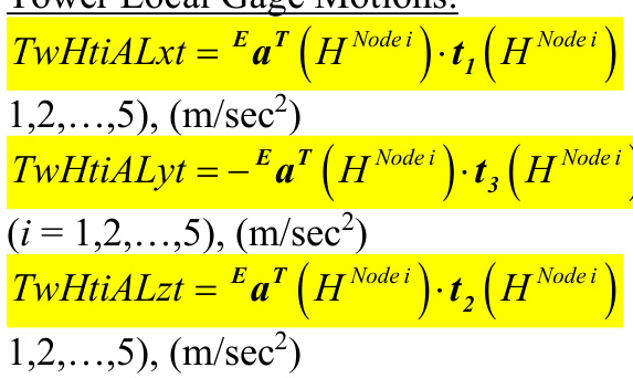 Tower-top / yaw bearing translational acceleration (directed along the xp-axis), (m/sec) Tower-top / yaw bearing translational acceleration (directed along the yp-axis), (m/sec) Tower-top / yaw bearing translational acceleration (directed along the zp-axis), (m/sec2)