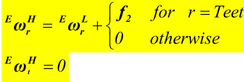 EvrT( h)=EvrZ+ $\begin{array}{r l r}&{\left{\begin{array}{l l}{\varepsilon_{\omega}^{x}\times r^{z T}\left(h\right)}&{f o r}&{r=d,5,6}\ {\phi_{l}^{T R L}\left(h\right)a_{l}-\left[S_{l l}^{T R L}\left(h\right)q_{T E A l}+S_{l2}^{T R L}\left(h\right)q_{T E A l}\right]a_{2}}&{f o r}&{r=T F A l}\end{array}\right.}\ &{\left{\begin{array}{l l}{\phi_{l}^{T S S}\left(h\right)a_{3}-\left[S_{l l}^{T S S}\left(h\right)q_{T S S l}+S_{l2}^{T S S}\left(h\right)q_{T S S2}\right]a_{2}}&{f o r}&{r=T S S I}\ {\phi_{2}^{T R L}\left(h\right)a_{l}-\left[S_{22}^{T R L}\left(h\right)q_{T E A2}+S_{l2}^{T R L}\left(h\right)q_{T E A l}\right]a_{2}}&{f o r}&{r=T F A2}\end{array}\right.}\ &{\left}\phi_{2}^{T R L}\left(h\right)a_{l}-\left[S_{22}^{T R L}\left(h\right)q_{T E A2}+S_{l2}^{T R L}\left(h\right)q_{T E A l}\right]a_{2}}&{f o r}&{r=T F A2}\ &{\phi_{2}^{T S S}\left(h\right)a_{3}-\left[S_{22}^{T S S}\left(h\right)q_{T S S2}+S_{l2}^{T S S}\left(h\right)q_{T S S l}\right]a_{2}}&{f o r}&{r=T S S2}\ {0}&{o t h e r w i s e}\end{array}\right.}\end{array}$ \boldsymbol{\varepsilon}_{\boldsymbol{\nu}_{t}^{T}}(h)\!=\!\boldsymbol{\ O}