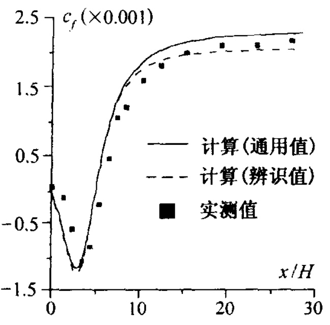 验证比较的内容包括速度型 {v}/{v_{\infty}} 、压力系数 C_{p} 、摩阻系数C湍动能 K/²、雷诺应力xy/2等。验证结果表明[2],在k-ε两方程模型的雷诺应力表达式中考虑非线性与各向异性的影响后,在一定程度上反映出了流动的部分本质特征,使得 k^{-}\varepsilon 模型的适用性和数值模拟精度有了较大的提高。而且,该非线性 k^{-}\varepsilon 模型在形式上对标准 k^{-}\varepsilon 两方程模型的改动不大,从而文保留了标准 k\!\sim\!\varepsilon 模型结构简单,使用方便经济,便于推广应用到三维情况的优点。因此,该模型具有较强的工程应用价值。但该模型的不足之处有两方面:一是在有曲率的流动情况下,尤其是沿凹壁的流动情况,该模型不能对流动特性做出准确的模拟;二是该模型对各向异性特别强的流动区域的模拟效果欠佳。这两方面是今后对该非线性模型做进一步改进与完善的主要方向。